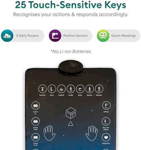 Interactive features teach sacred texts and postures audibly. Cushioned for joint protection in worship. Sensitive panels respond to user interactions. Portable speaker enhances clarity of recitations. Appeals to learners of faith traditions. Folds compactly for storage. Battery life supports multiple sessions. Integrates tradition with modern aids.
