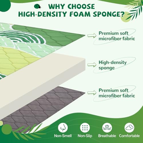 Thick foam cushions delicate bodies during floor exploration. Whimsical insect motif sparks curiosity in young minds. Anti-slip bottom stays put on various floorings. Portable for use in different rooms or outdoors. Wipes clean from spills or drool quickly. Expansive area allows multiple kids to join. Folds for convenient transport. Promotes motor skills development through play.